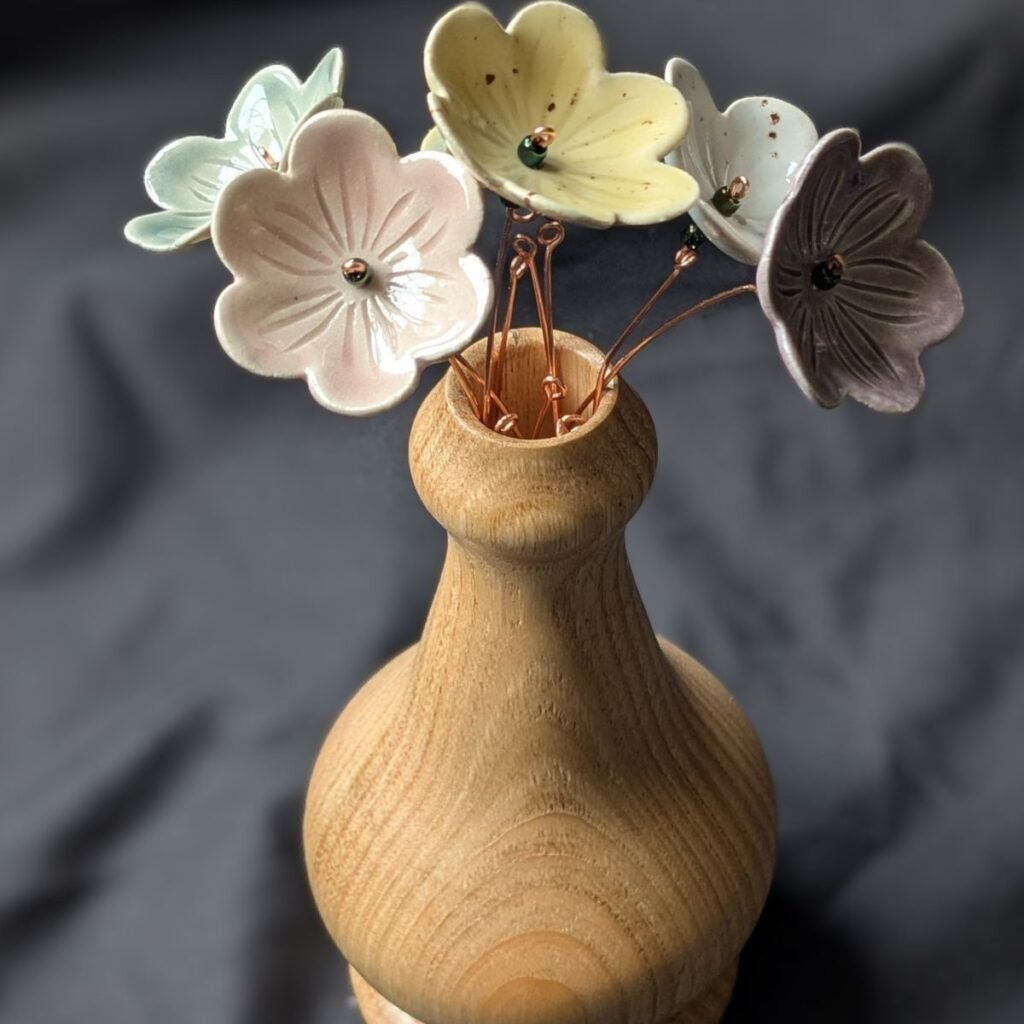My handmade everlasting ceramic flowers are a popular gift or a pretty treat your own home. A unique alternative to fresh flowers, these pottery blooms on their copper stems will show their best for many years to come.